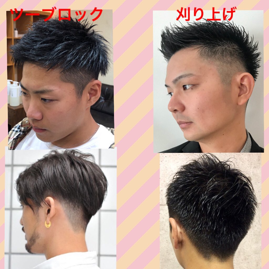 Cut Studio雅 Twitter Da ツーブロックと刈り上げの違いがわからないと聞かれますので画像を作りました 被さってるのがツーブロック 繋がってるのが刈り上げです 似てるようで全く違うスタイルですのでご注文時に確認用に使って下さい 宮代町 1000円カット